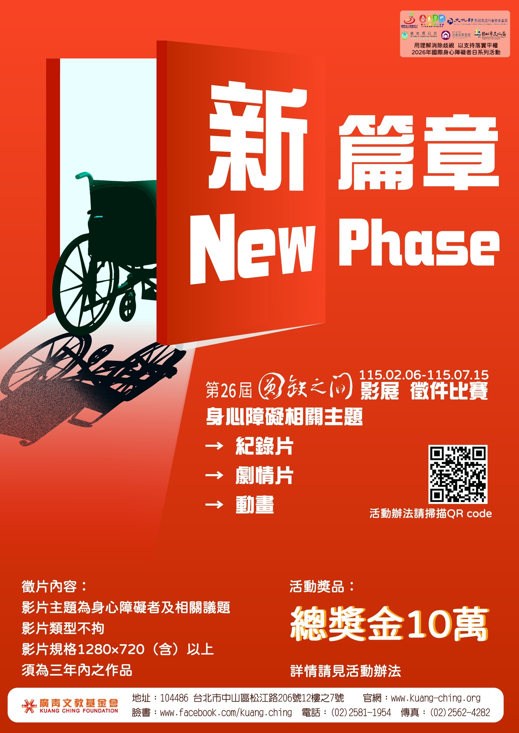 長期致力於推動身心障礙平權的「廣青文教基金會」,目前正在舉辦第26屆【圓缺之間】身心障礙者影展徵件比賽!本屆主題定為「新篇章 (New Phase)」,鼓勵大眾透過電影、紀錄片或動畫短片,探索那些隱藏在日常中、亟待被聆聽的真實故事。