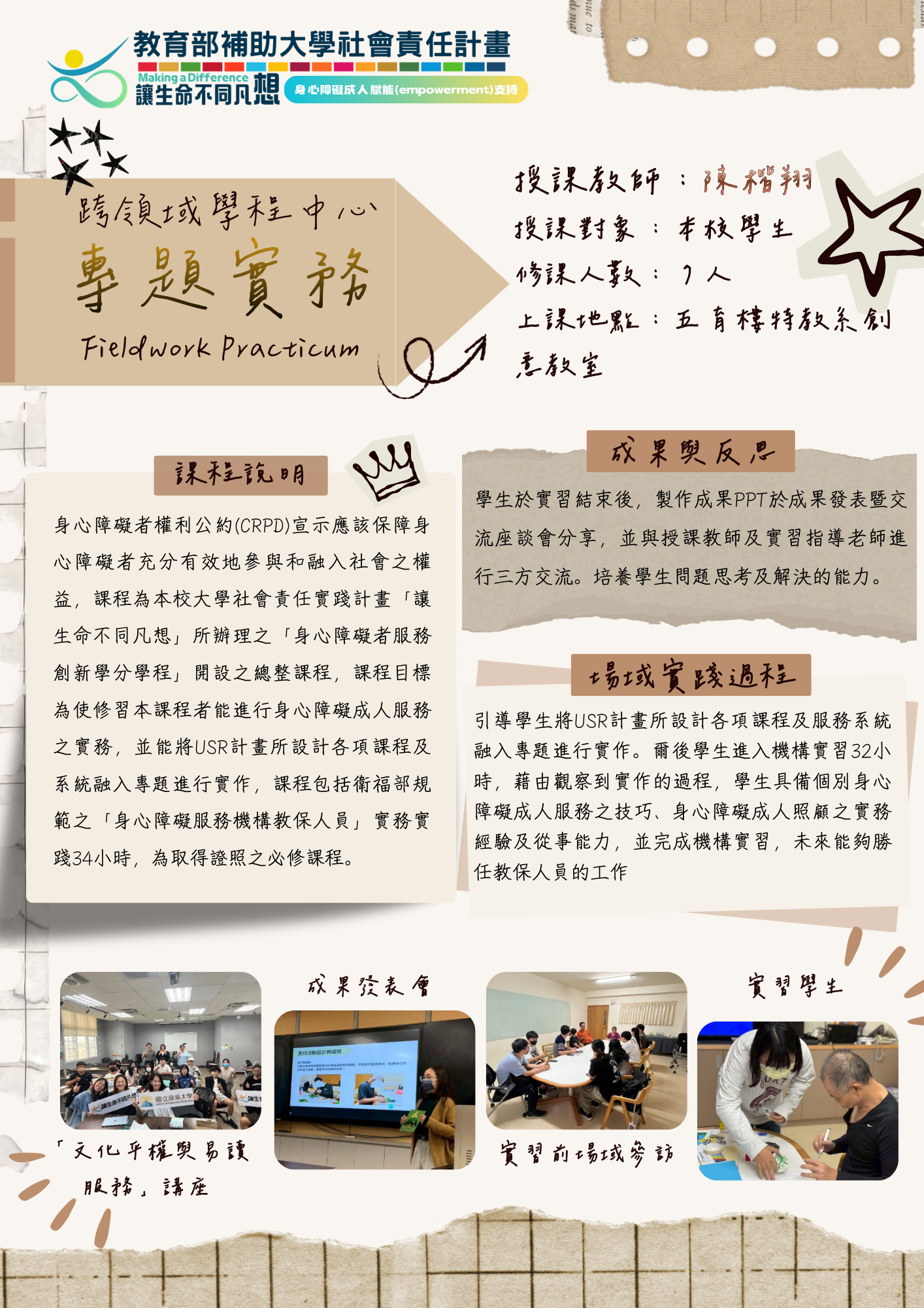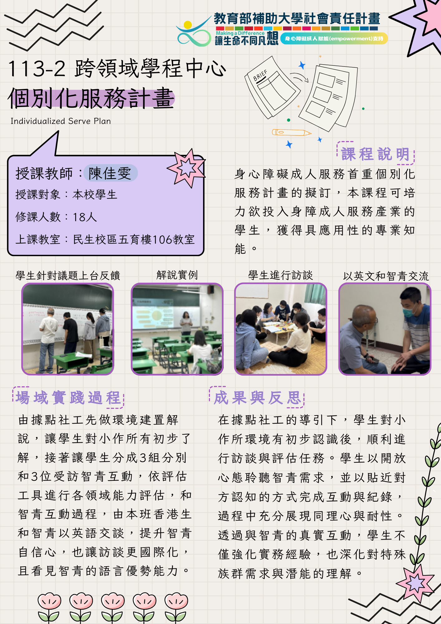 #專題實務  #個別化服務計畫 #肢動訓練與輔具應用 #身心障礙者特質與服務概論
